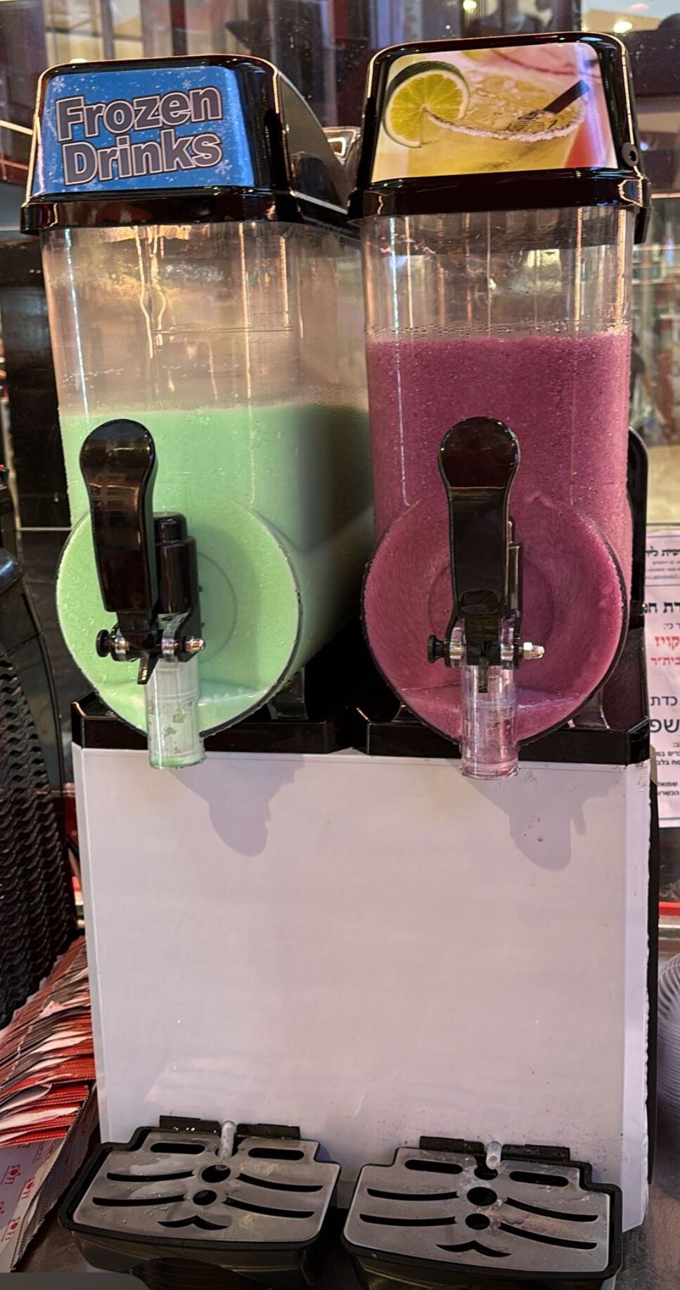 מכונת ברד איכותית מקצועית למשקאות קפואים בטעמים שונים שני מיכלי אחסון 12 ליטר כל תא ידיות חזקות למזיגה