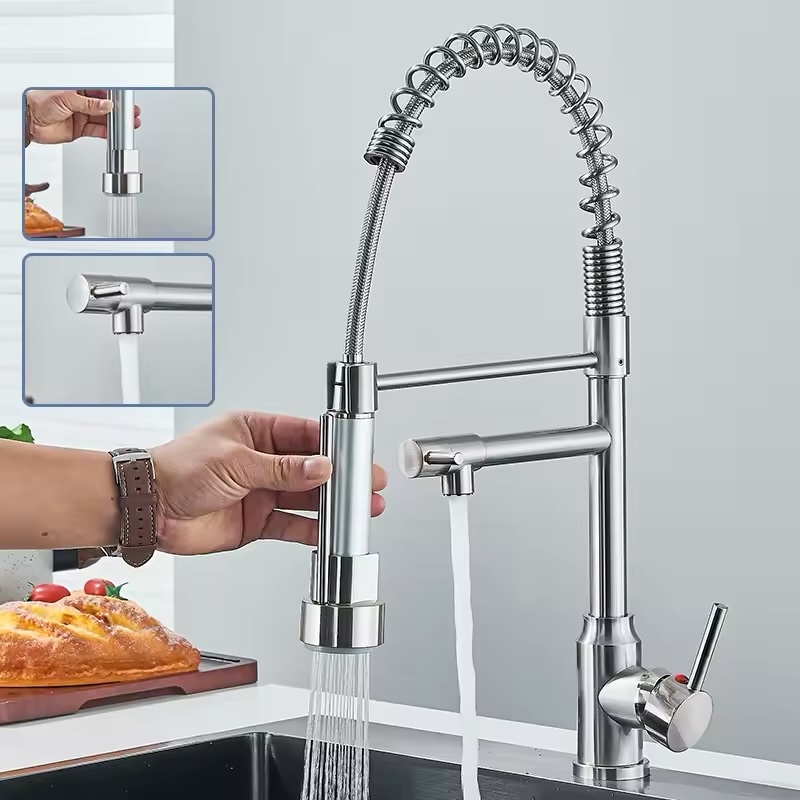 ברז הקפיץ כולל ראש גמיש עם תנועה מלאה של 360 מעלות. כך ניתן לשטוף כלים גדולים ולנקות כיורים רחבים בקלות. מעבר לכך, ניתן לשלוט בצורה מדויקת בלחץ הזרם בהתאם לצורך.