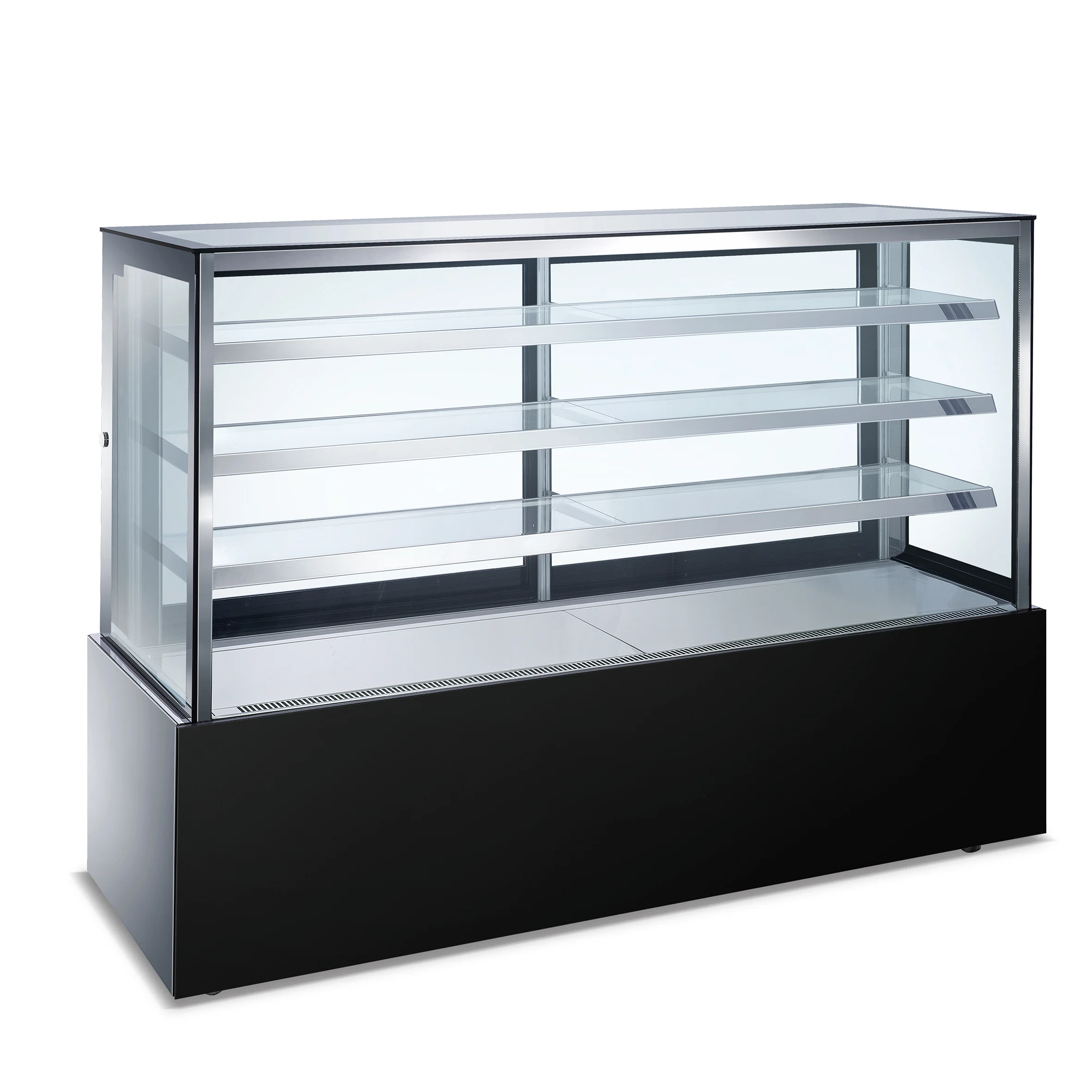 מקרר תצוגה רצפתי 4 קומות – לעוגות, קינוחים וכריכים | דגם חזית ישרה 90/120 ס"מ בצבע שחור יוקרתי