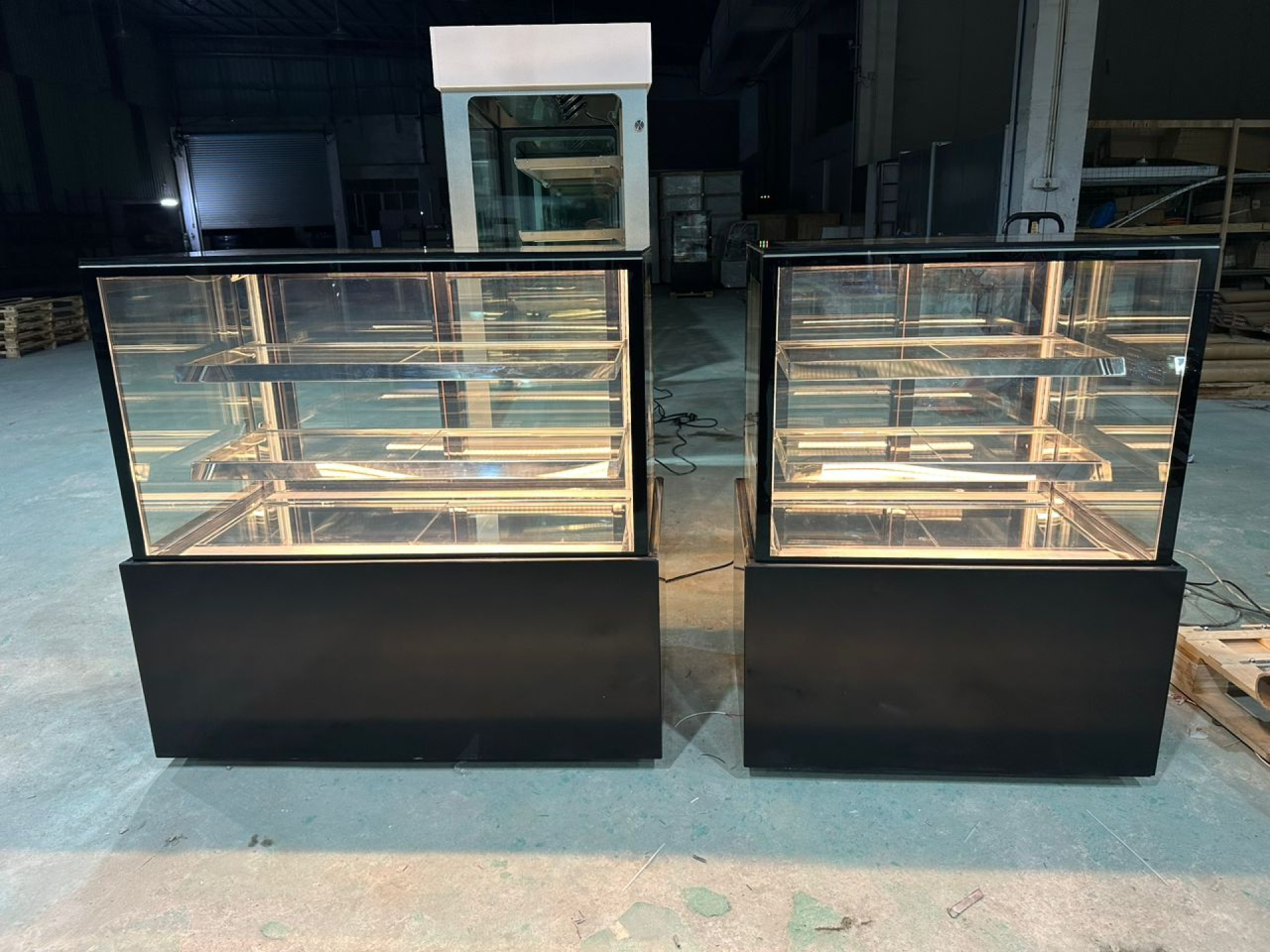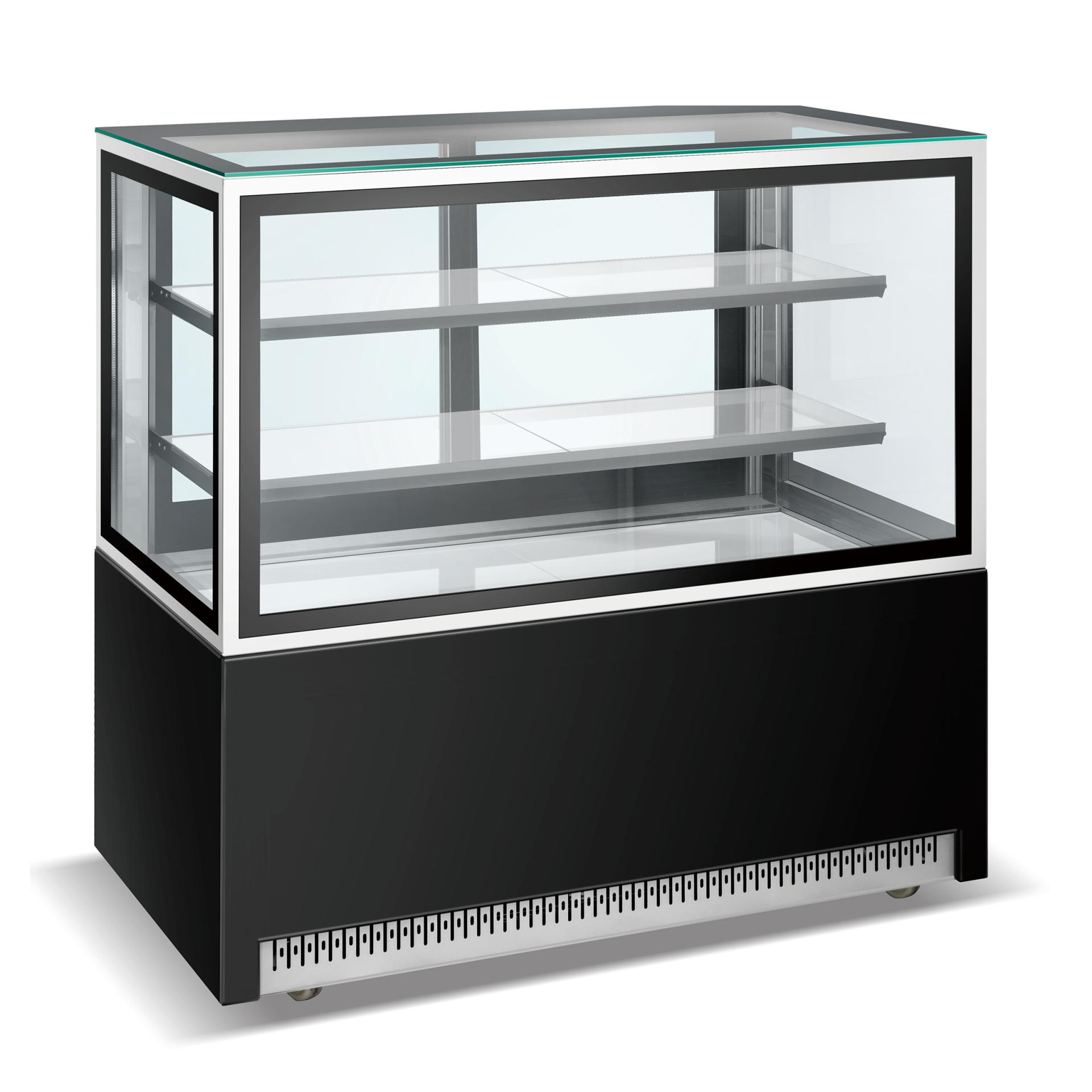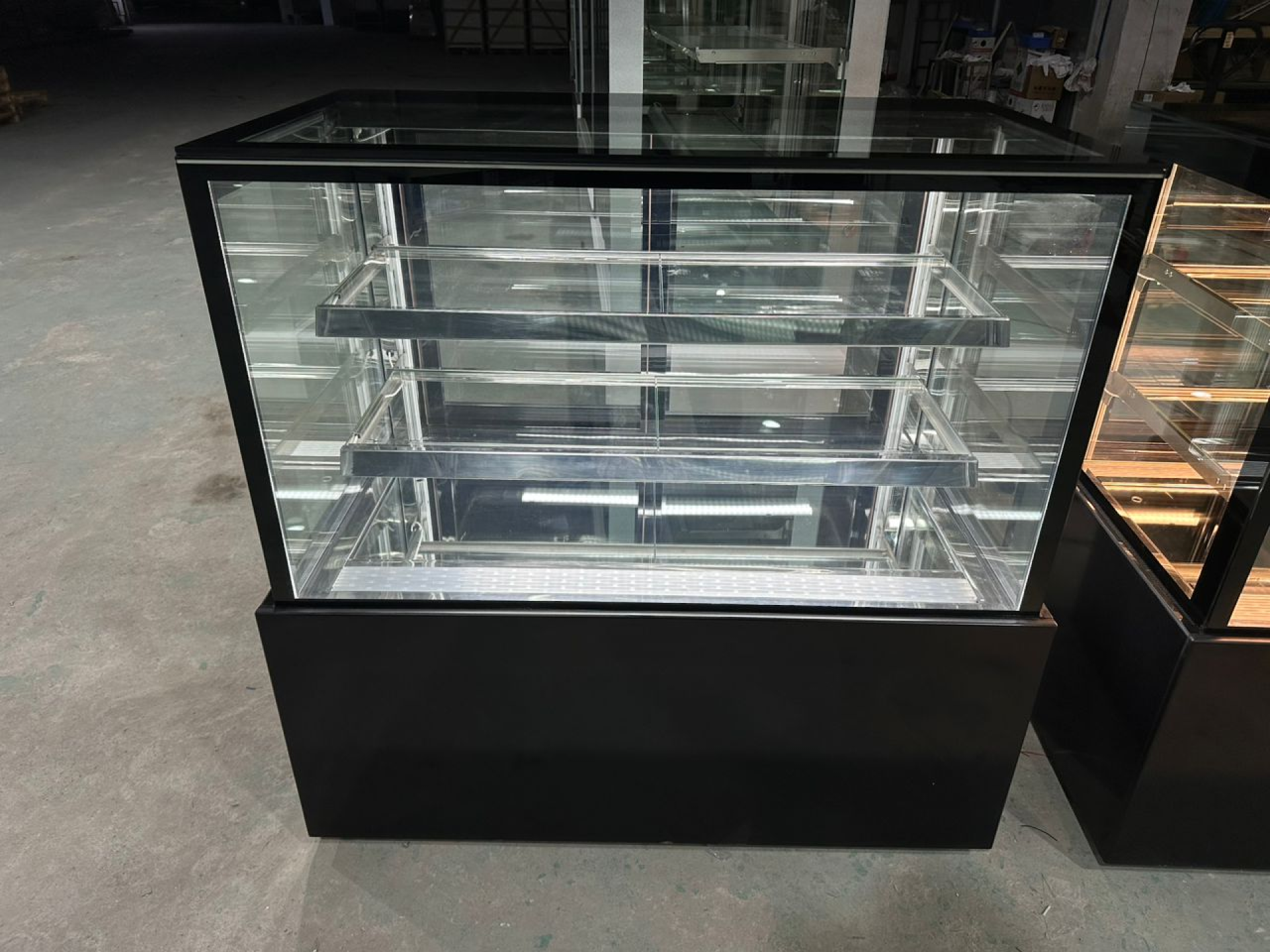 מקרר תצוגה רצפתי 3 קומות – לעוגות, קינוחים וכריכים | דגם חזית ישרה 90/120 ס"מ בצבע שחור יוקרתי
