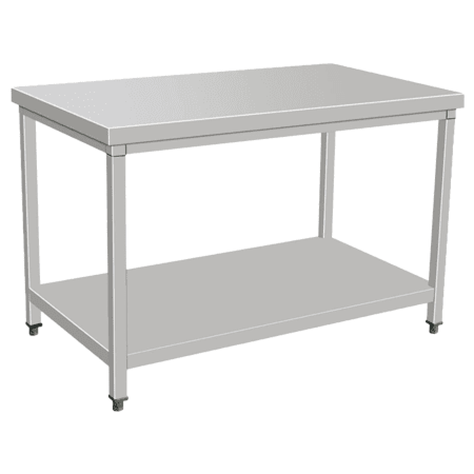 שולחן עבודה נירוסטה מקצועי עם מדף תחתון, זמין במידות רוחב 80–240 ס"מ × עומק 60 ס"מ. מתאים למטבחים מוסדיים, מסעדות, קייטרינג, מפעלי ייצור ואף למטבח הבית – שולחן עמיד, יציב ונוח לעבודה אינטנסיבית.