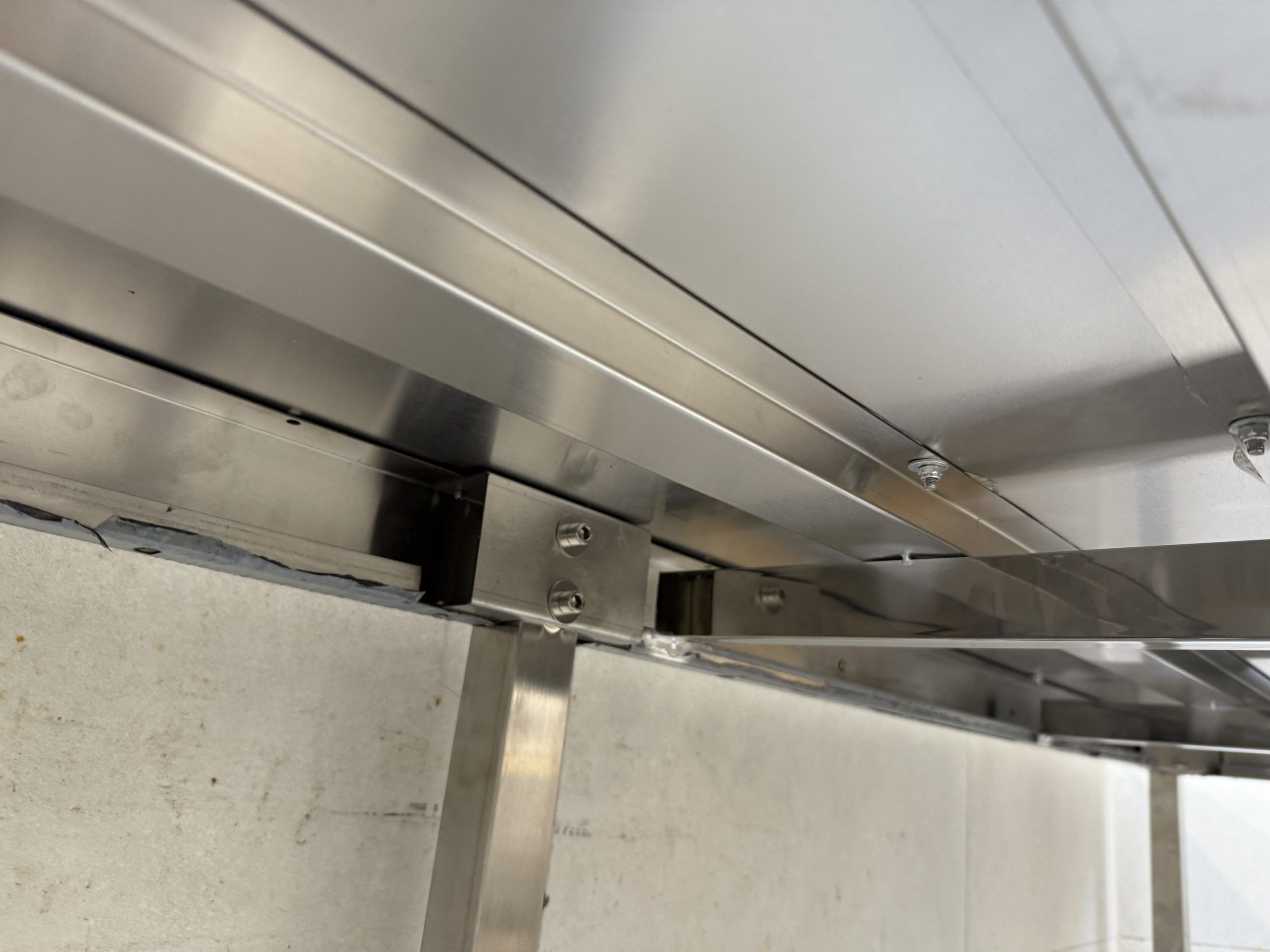 השולחנות מיוצרים מנירוסטה 304SS איכותית בעובי 1.2 מ"מ מלא, עם חיזוק פנימי תחתון, ללא פלטת עץ מתחת. מבנה זה מבטיח עמידות גבוהה גם בתנאים תפעוליים אינטנסיביים.
