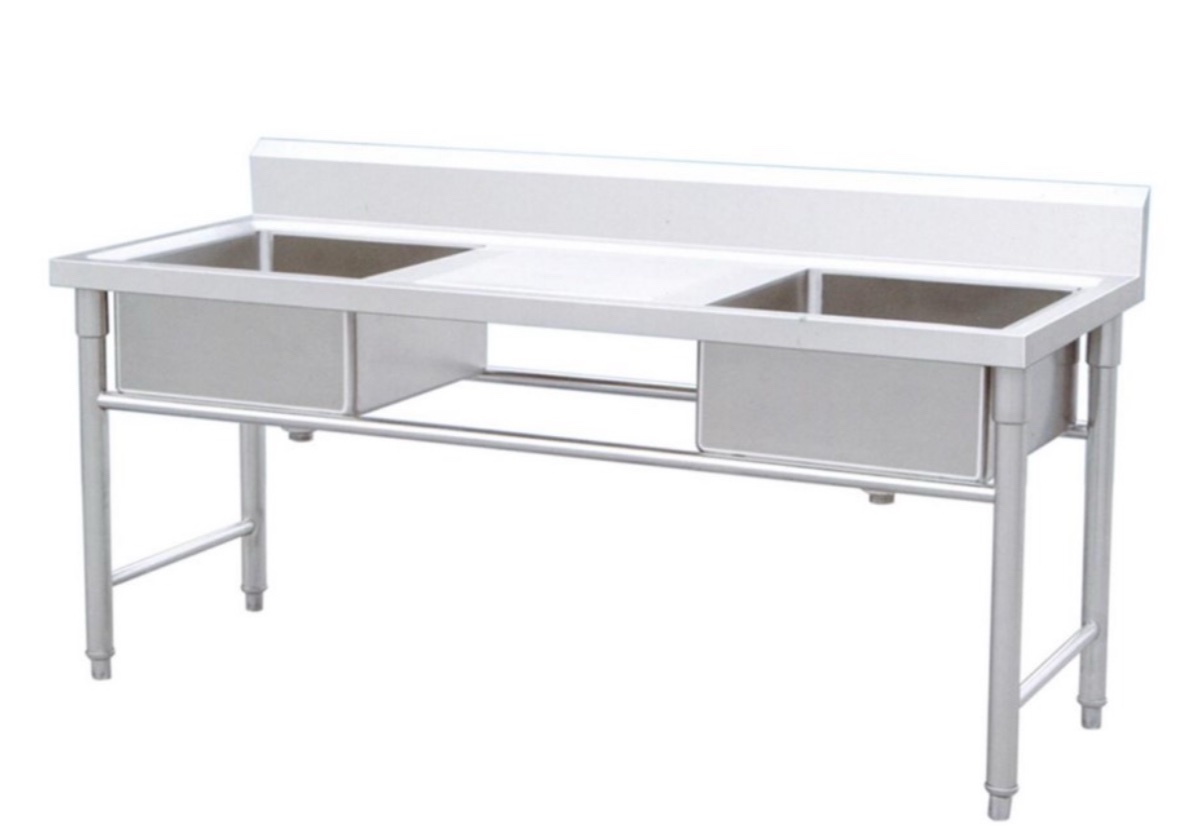 שולחן נירוסטה 304 עם שני כיורים מספק פתרון עבודה מקצועי למטבחים תעשייתיים.